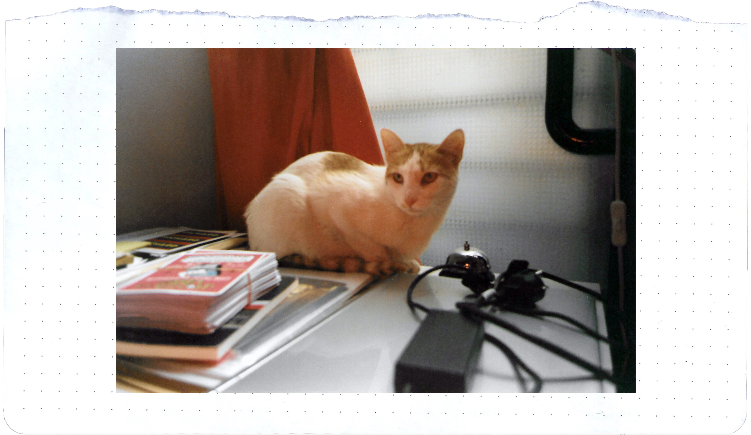 Foto colocada sobre una hoja de papel y enmarcada en cristal transparente.